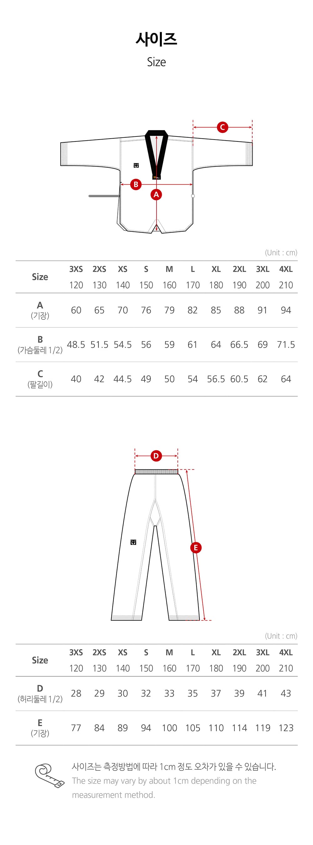 - Boyunuza göre dobok bedeninizi seçebileceğiniz şekilde tasarlandı.