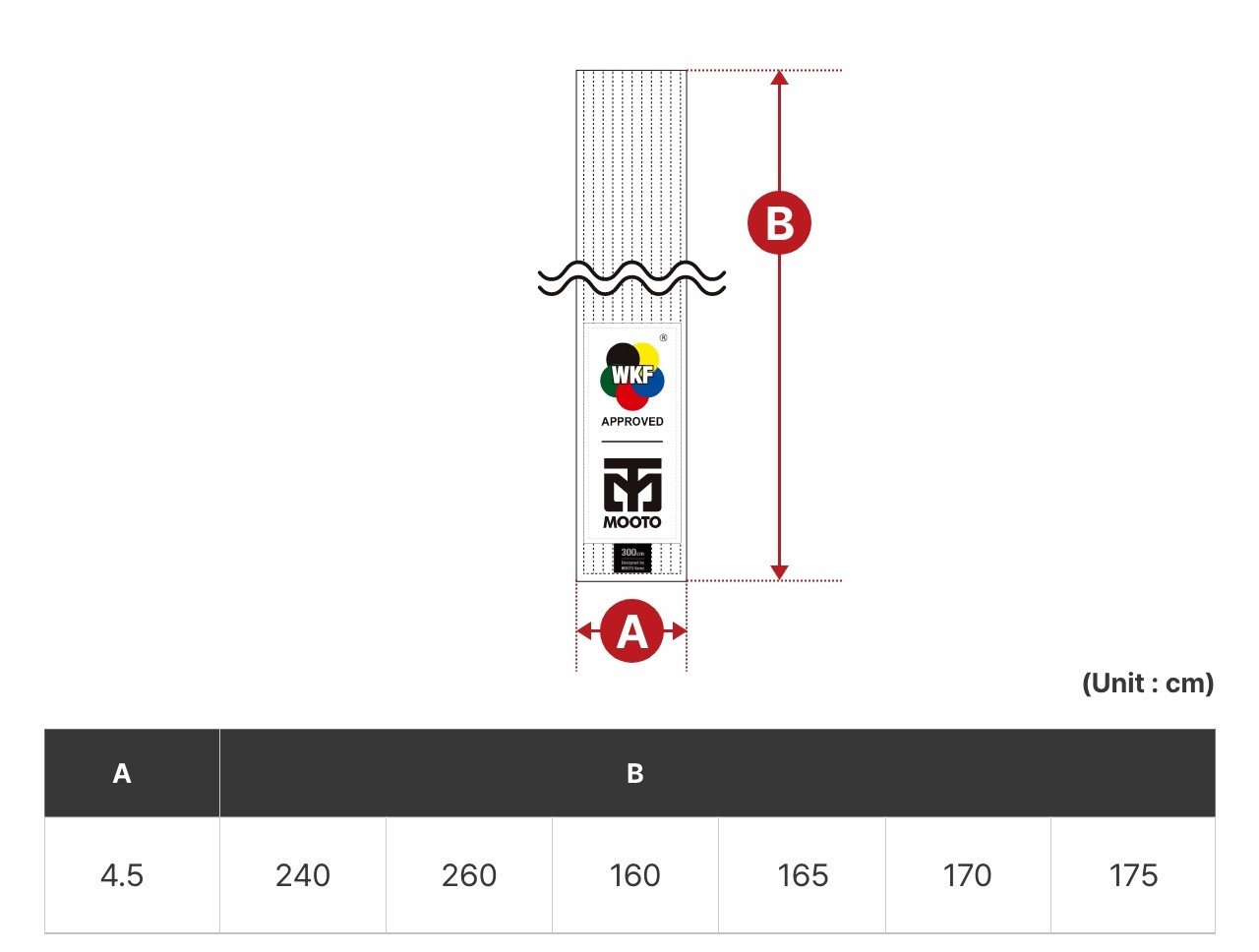 4.5 cm genişliğinde olup, 240 cm’den 340 cm’ye kadar 6 farklı beden seçeneği sunar. -