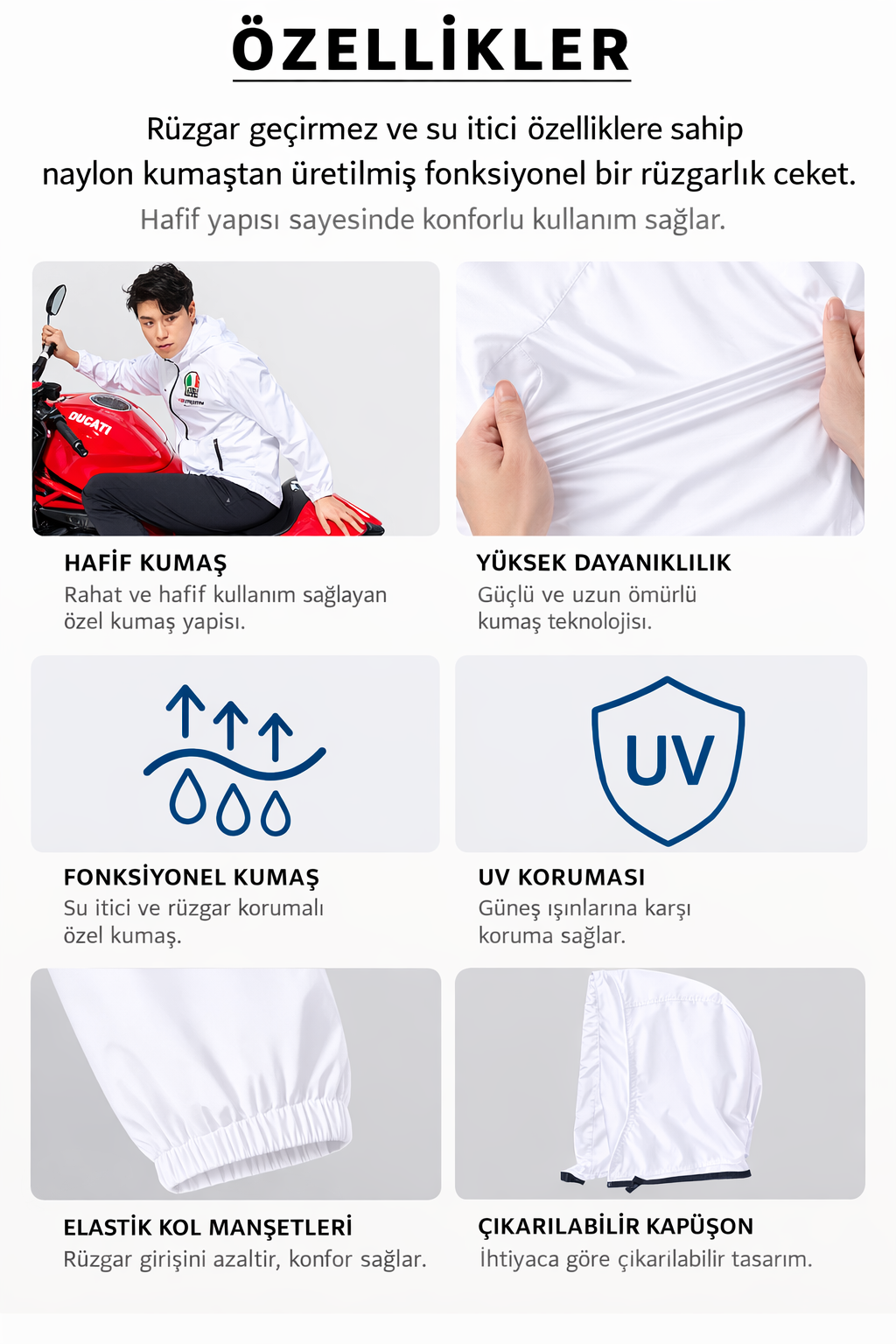 Rüzgarlık Spor Ceket, hafif yapısı, fonksiyonel kumaş teknolojisi ve modern tasarımı ile hem spor aktivitelerinde hem de günlük kullanımda maksimum konfor sunmak için geliştirilmiş bir rüzgarlık cekettir.